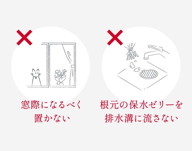 特別な器や花瓶が不要で、そのまま自立するデザインのため、受け取ったその瞬間から、簡単に飾ることができます。
