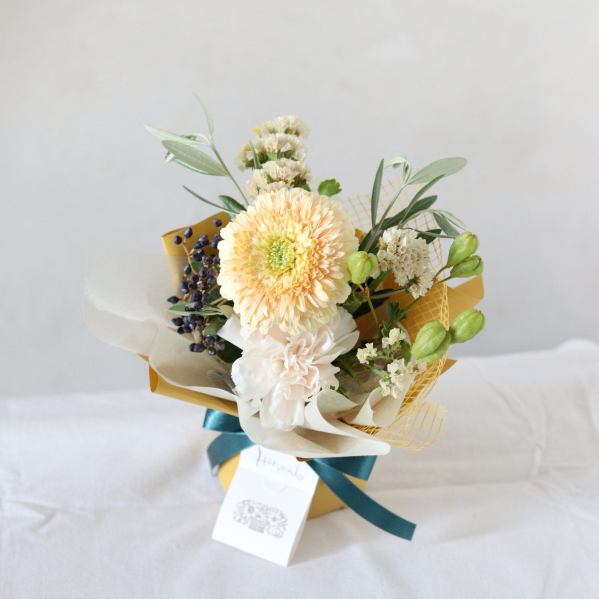 日常にひとすじの光を添えるような、明るい秋の花束です。